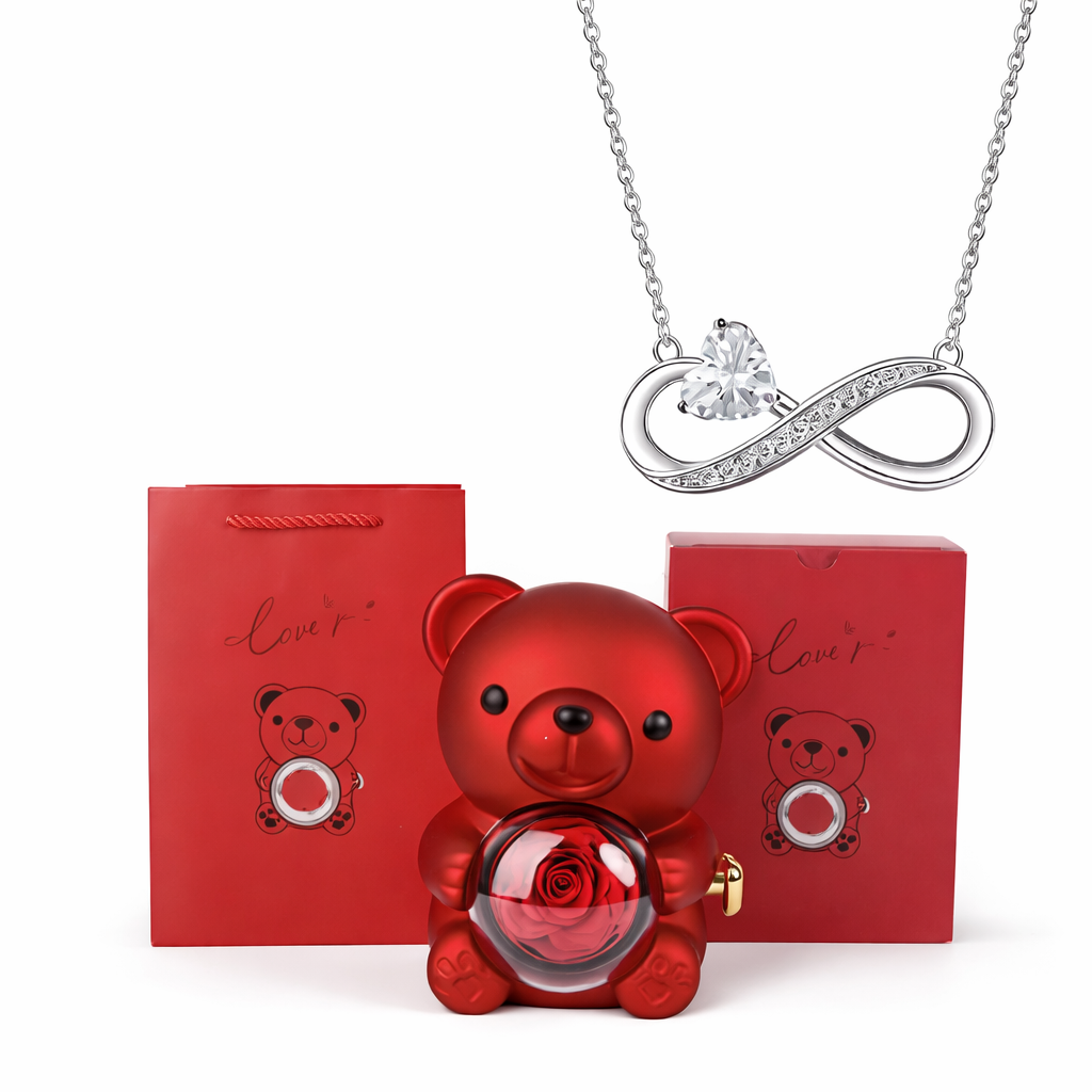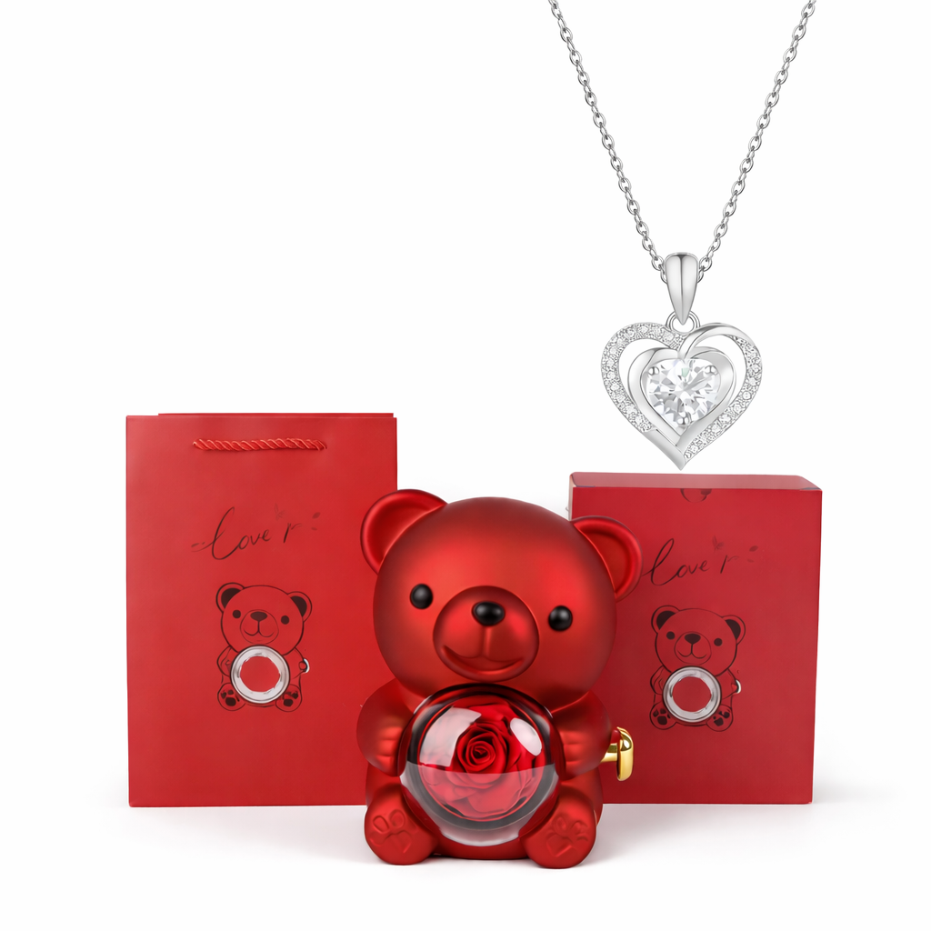 To elegancka figurka zaprojektowana jako prezent walentynkowy z naszyjnikiem ukrytym w środku.